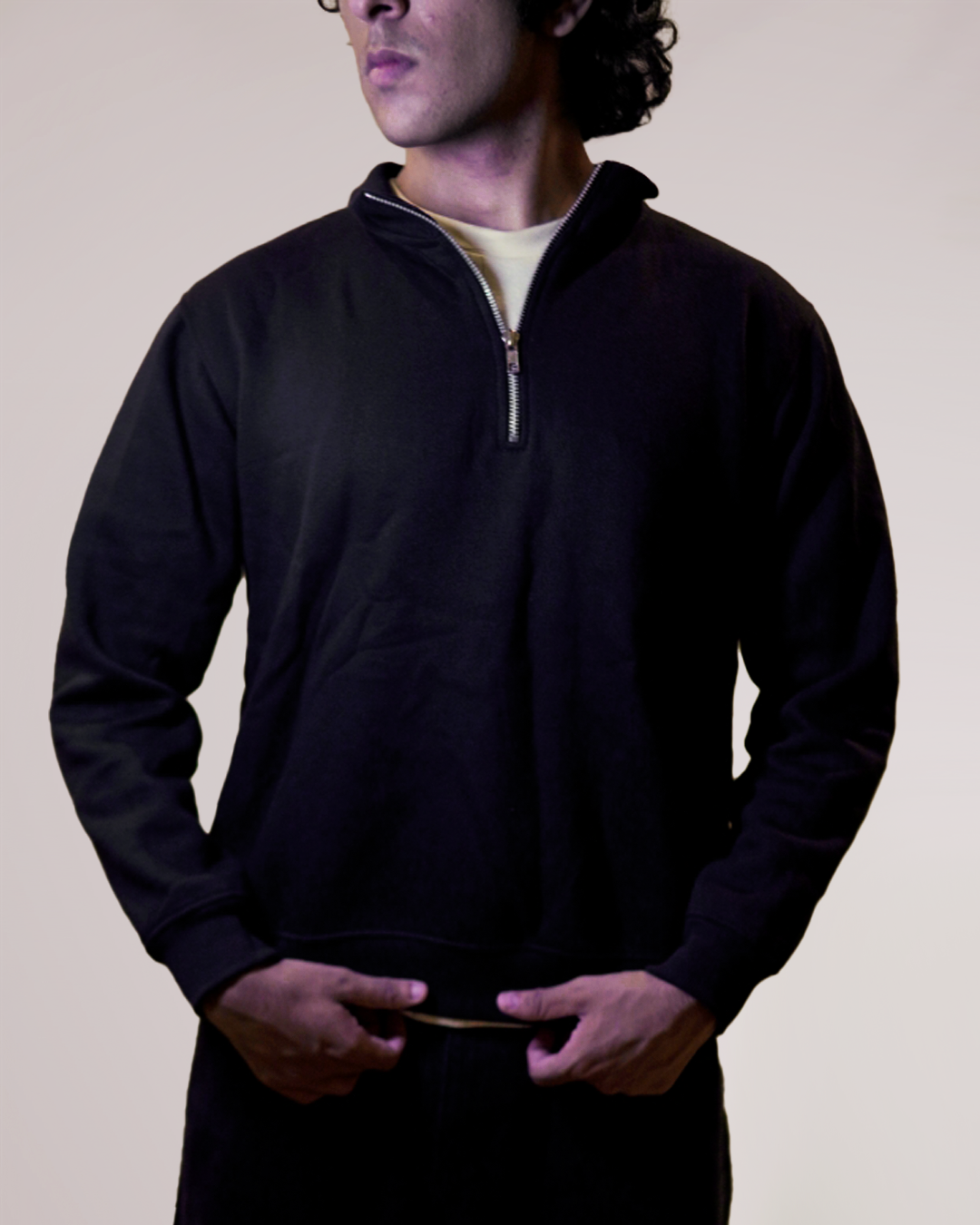 Designed for those who appreciate refined luxury, our Black Quarter-Zip Sweater blends classic elegance with modern comfort. Crafted from a premium 60% cotton and 40% polyester blend, it offers a soft yet durable feel, ensuring both breathability and longevity.